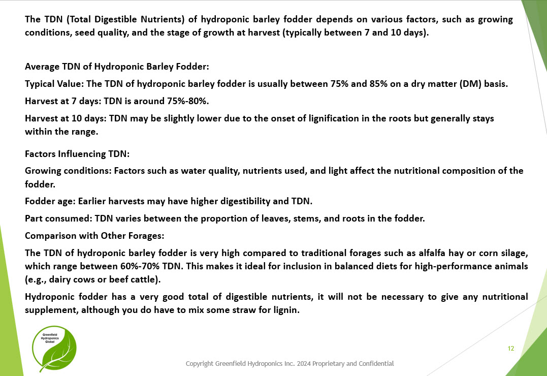 Given that hydroponic forage is rich in digestible protein, the primary deficiency to address will be energy. Additionally, it's likely that supplemental minerals and vitamins will be needed.